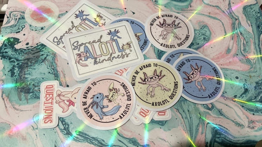 Never be afraid to Axolotl Questions stickers | Tumbler decals | Laptop Decals | Bullet Journals | Happy Planner Decals | Decorations